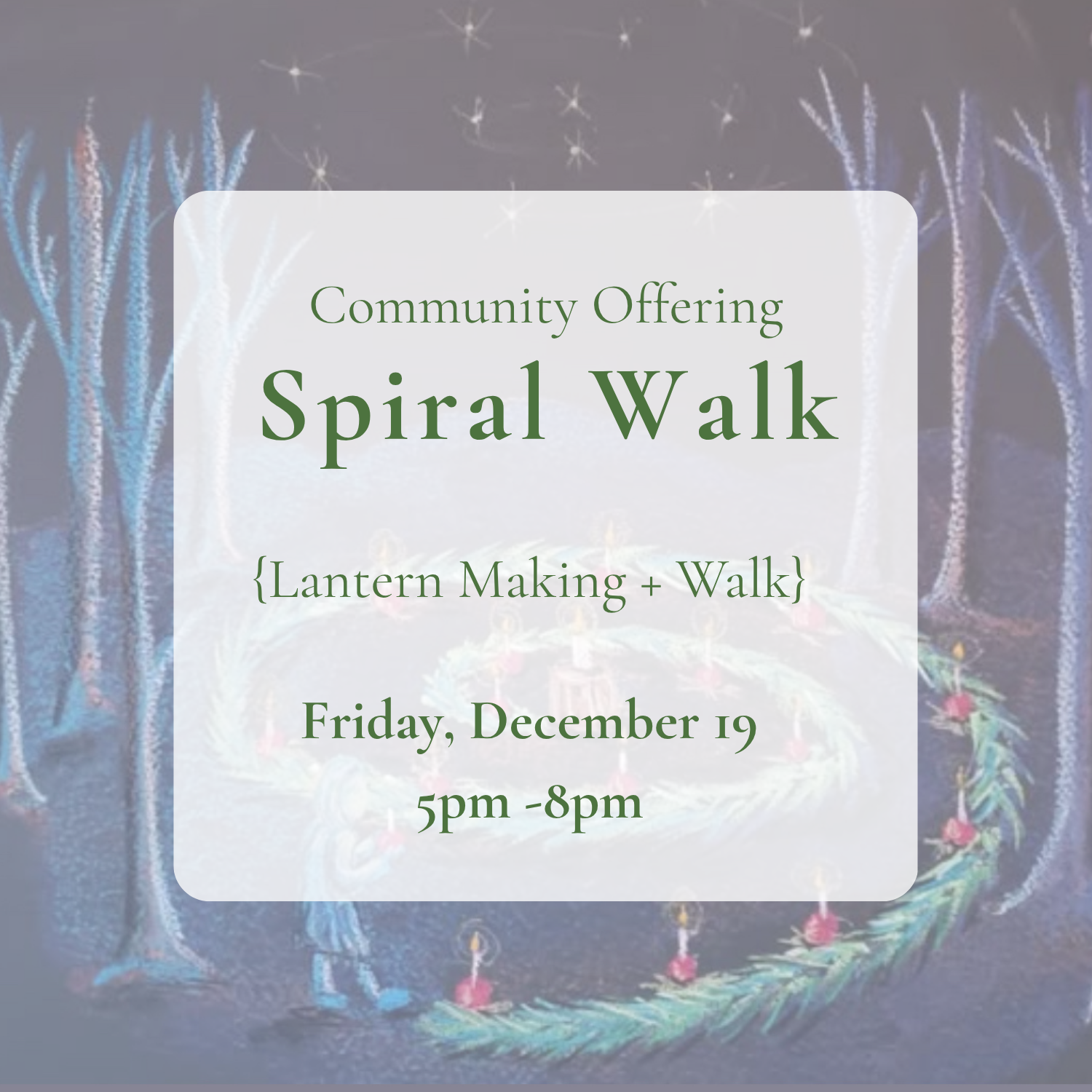Our Spiral Walk is inspired by Waldorf traditions from many cultures. It is a peaceful, seasonal gathering open to everyone.