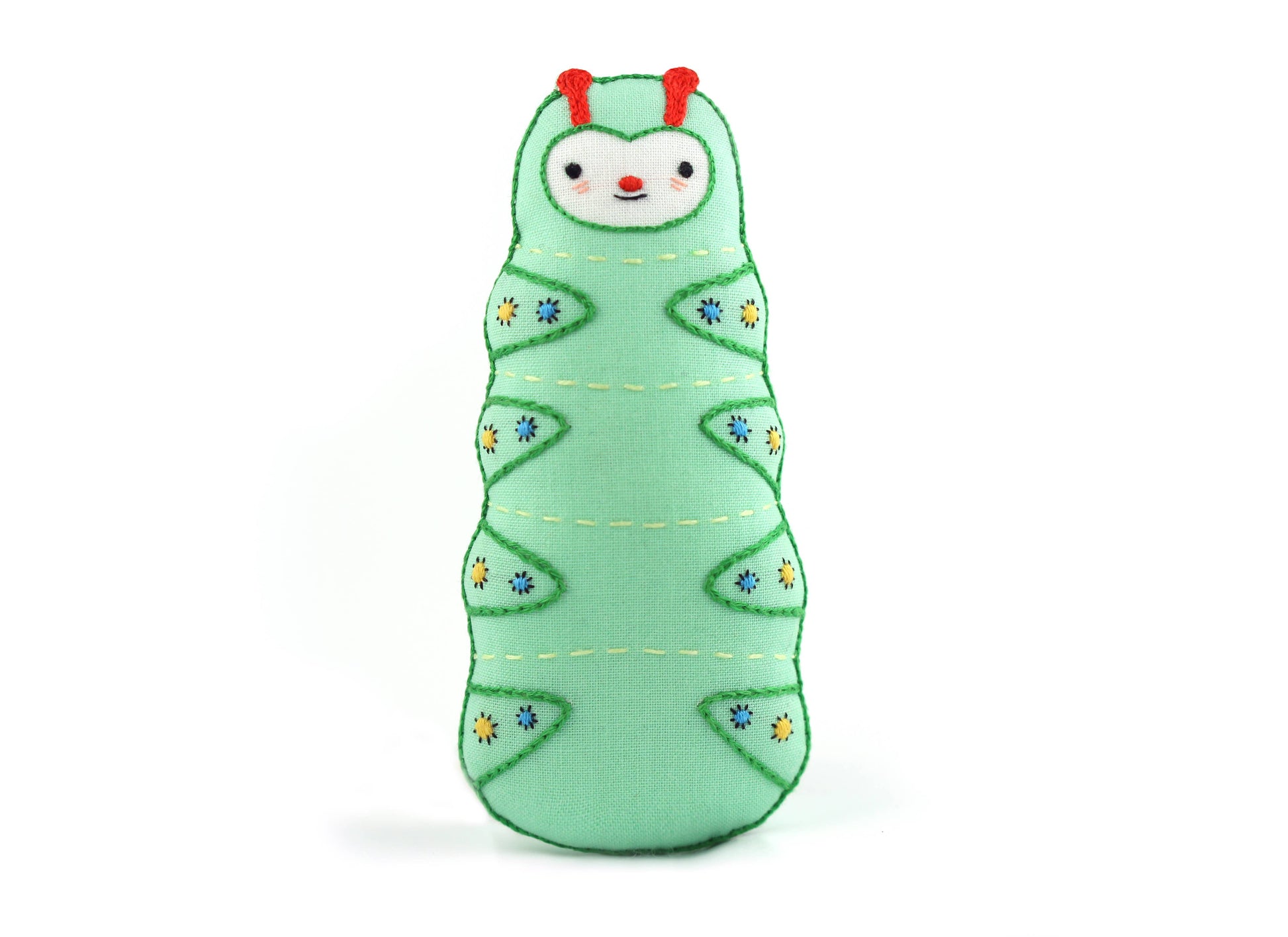Caterpillar is a Level 1 pattern, featuring basic stitches used sparingly. All Kiriki patterns are screen printed by hand with vibrant, water-based inks right onto the fabric so no tracing or transferring is ever required!