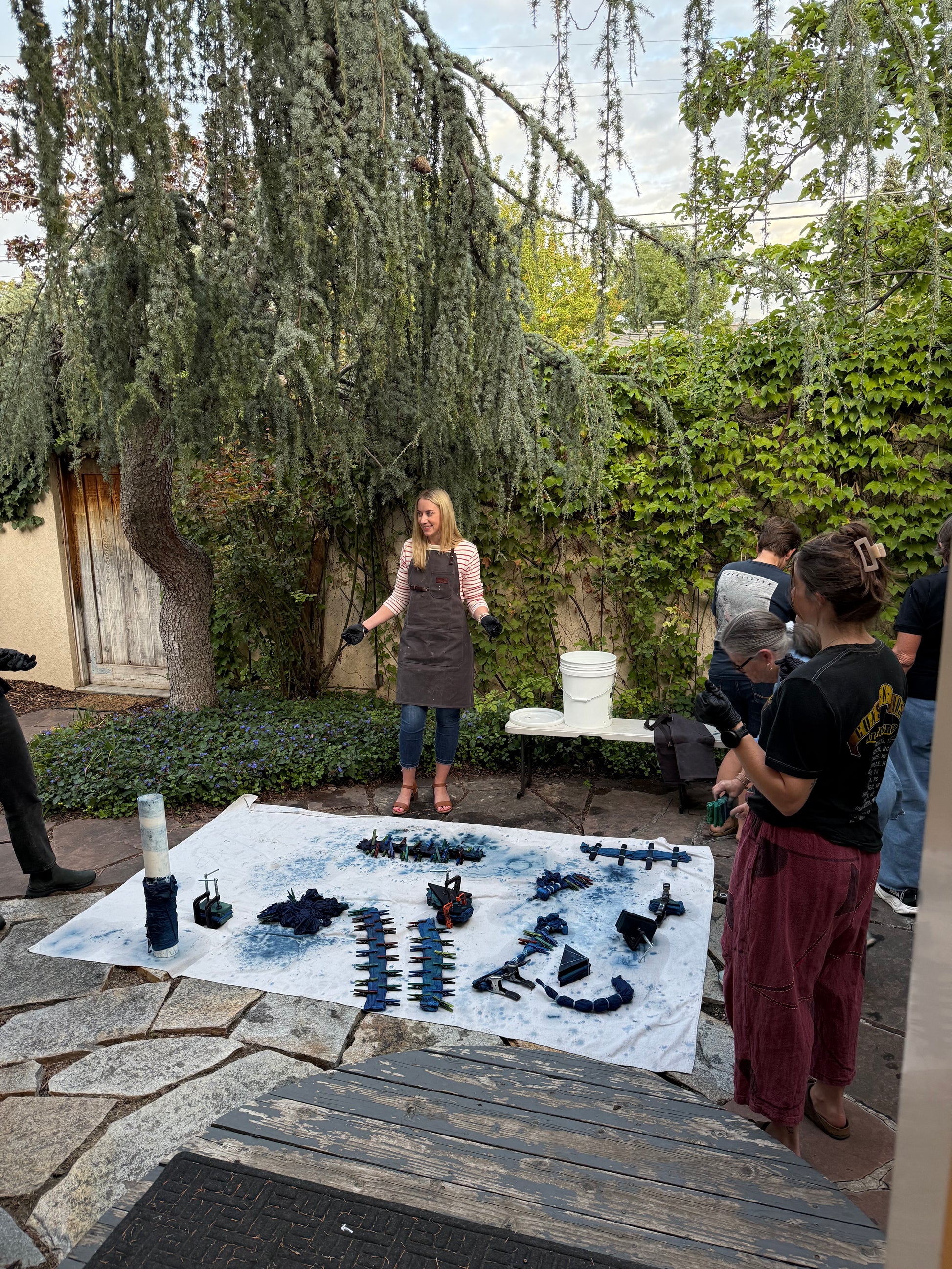 Discover the beauty of Shibori, a traditional Japanese resist-dyeing technique that transforms simple fabric into stunning works of art. Guided by local artists Sarah Vraneš or Jennifer Samuelson, guests will explore the rich traditions of indigo dyeing—learning to fold, twist, bind, and dye fabric to create mesmerizing patterns and depth of color.